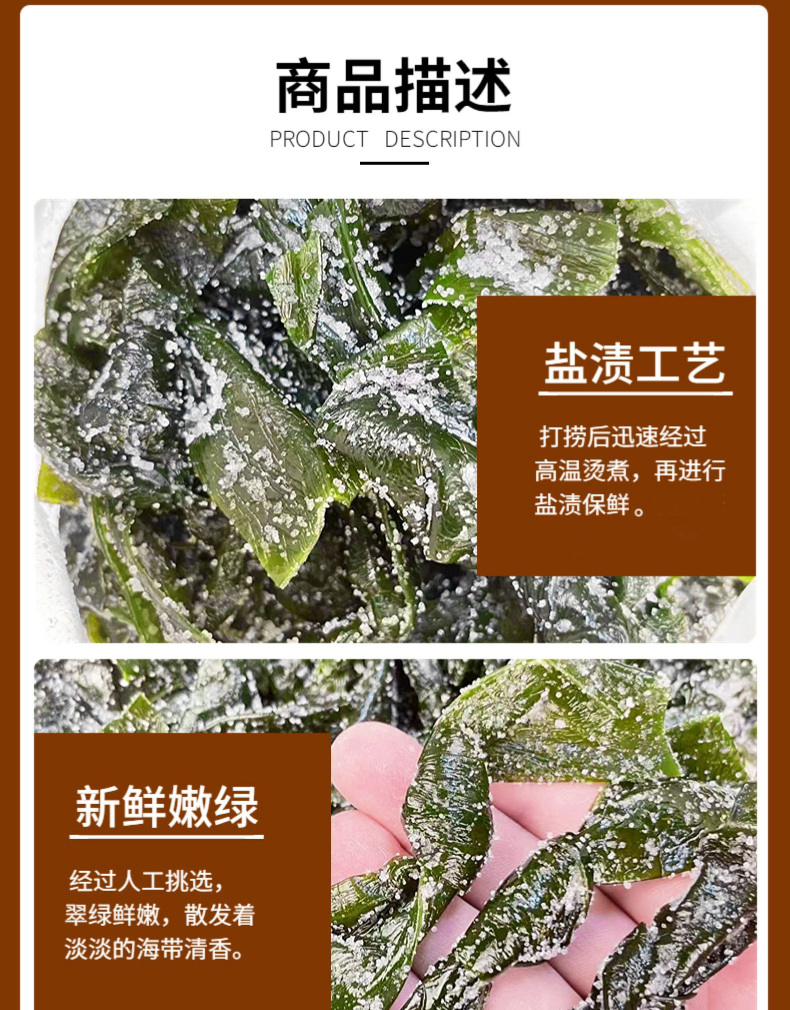 描述:霞浦海鲜网,霞浦海带结,盐渍海带结批发零售,产地工厂直供,品质保证